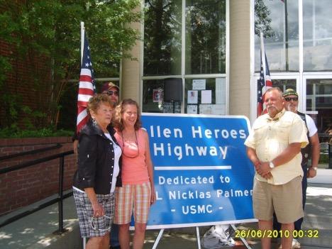 A memorial service was held at the largest facility in town, the high school auditorium, but 5000 seats weren’t enough – an overflow facility was required. And in came “a laundry basket full of letters from all over the country.” There’s also a section of highway named for Nick, called the Fallen Heroes Highway.